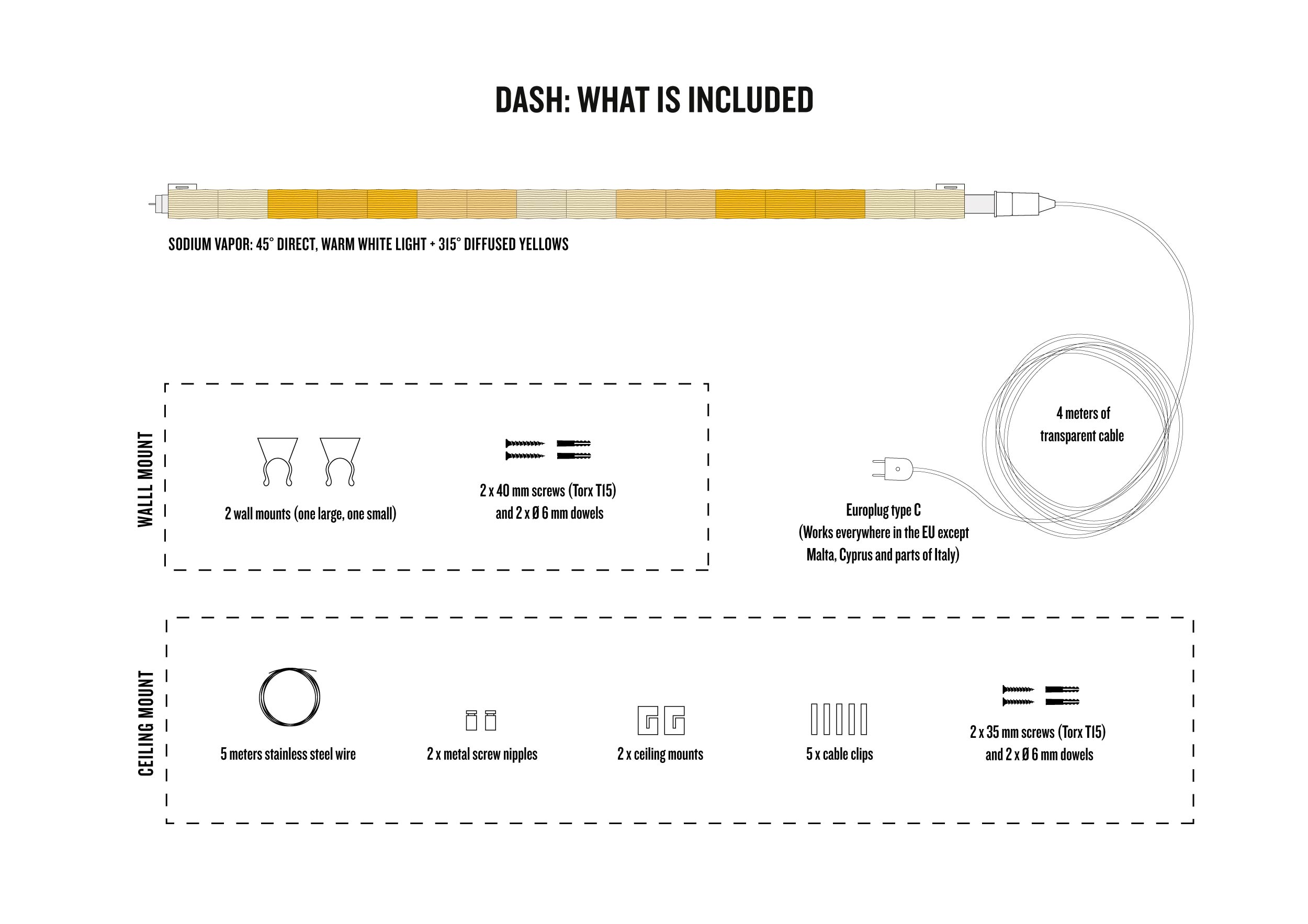 Dash: Sodium Vapor (120 cm) – multifunctional, 3d printed lamp with integrated LED tube